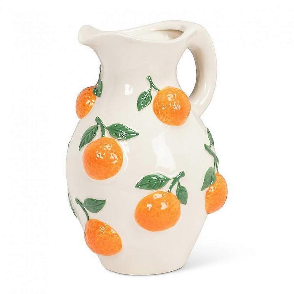 Our Large Jug with Oranges is generously sized for holding refreshing beverages, covered in a bright orange motif. The sturdy handle and wide spout ensure easy pouring. It is perfect for serving lemonade, iced tea, or sangria at summer gatherings, adding a playful and inviting touch to your table.