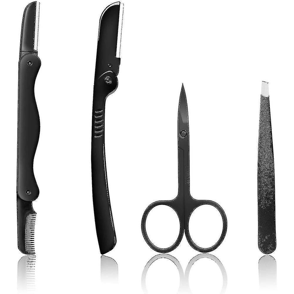 Tweezers 4 In 1 Eyebrow Trimmers Kit, Eyebrow Razor, Scissors, Eyebrow1 Setblack-r
