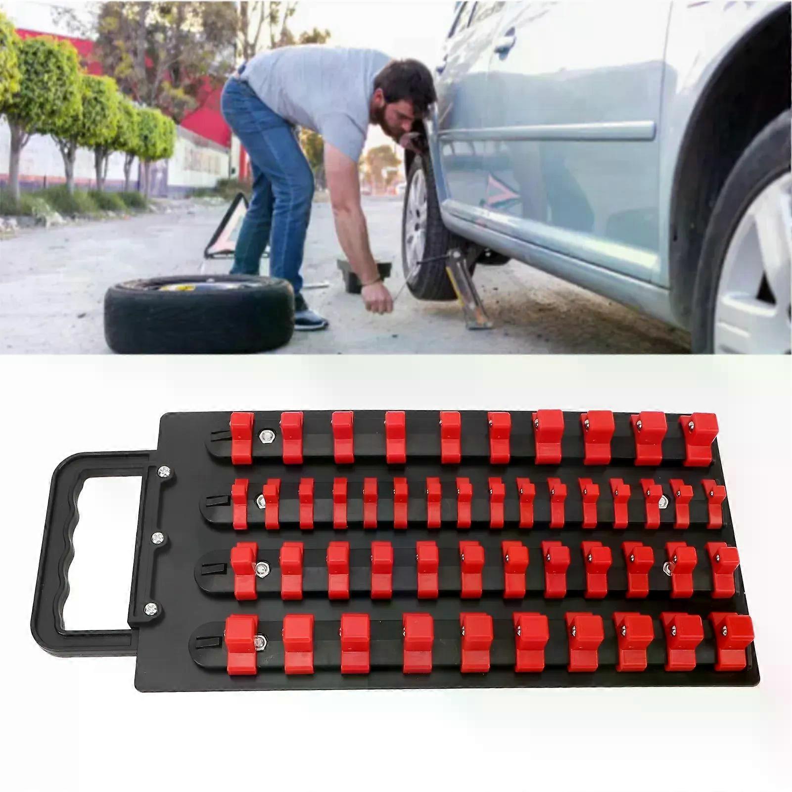 48 Piece Socket Organizer Tray 1/2 Inch X 14 Clips 3/8 Inch X 18 Clips 1/4 Inch X 16 Clips Portable Socket Rail Holder with Hand
