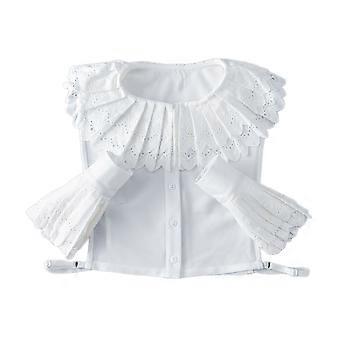 Elastic Size Wrist Cuffs+False Collar Adult Blouses Removable Fake Sleeves Flounces Wrist Cuffs for Women Teens Girls White