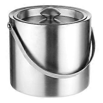 Seau à glace en acier inoxydable avec poignée Double seau à glace isolé Boîte à lunch Seau à vin rouge Seau à bière (couleur: argent) (1pcs) Sat2ax2