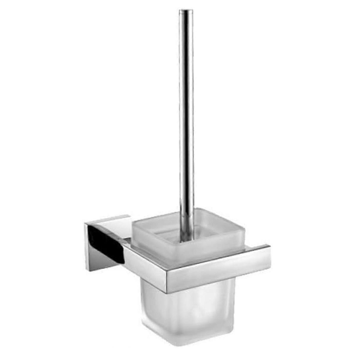 Wall mounted toilet brush holder, toilet brush for the toilet made of stainless steel and glass, polished mirror chrome