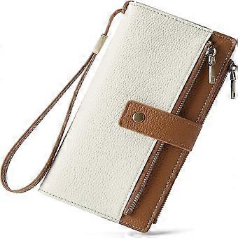 Grand portefeuille pour femmes en cuir véritable RFID blocage multi carte organisateur bracelet