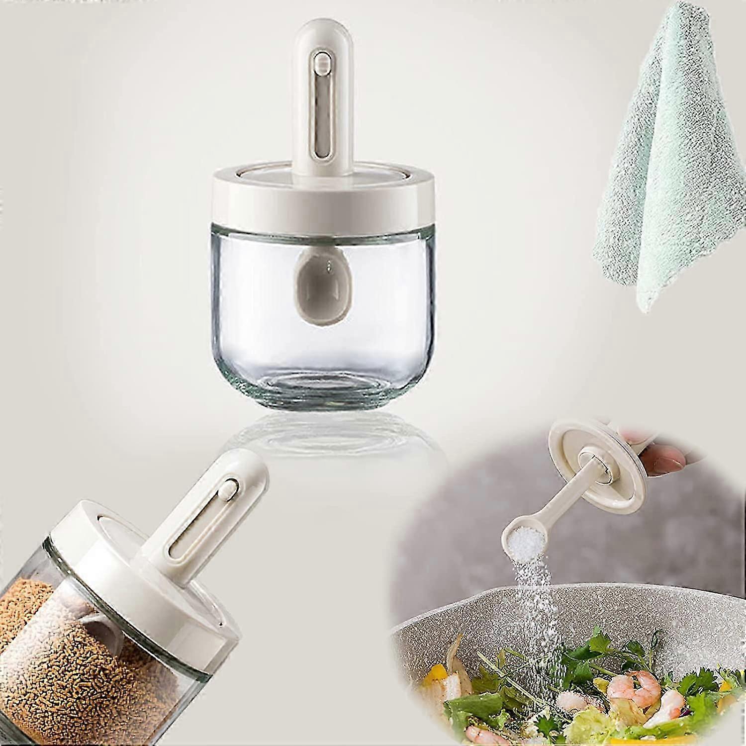 Spoon Lid Integrated Retractable Seasoning Jar, Glass Condiment Jar Spice Container