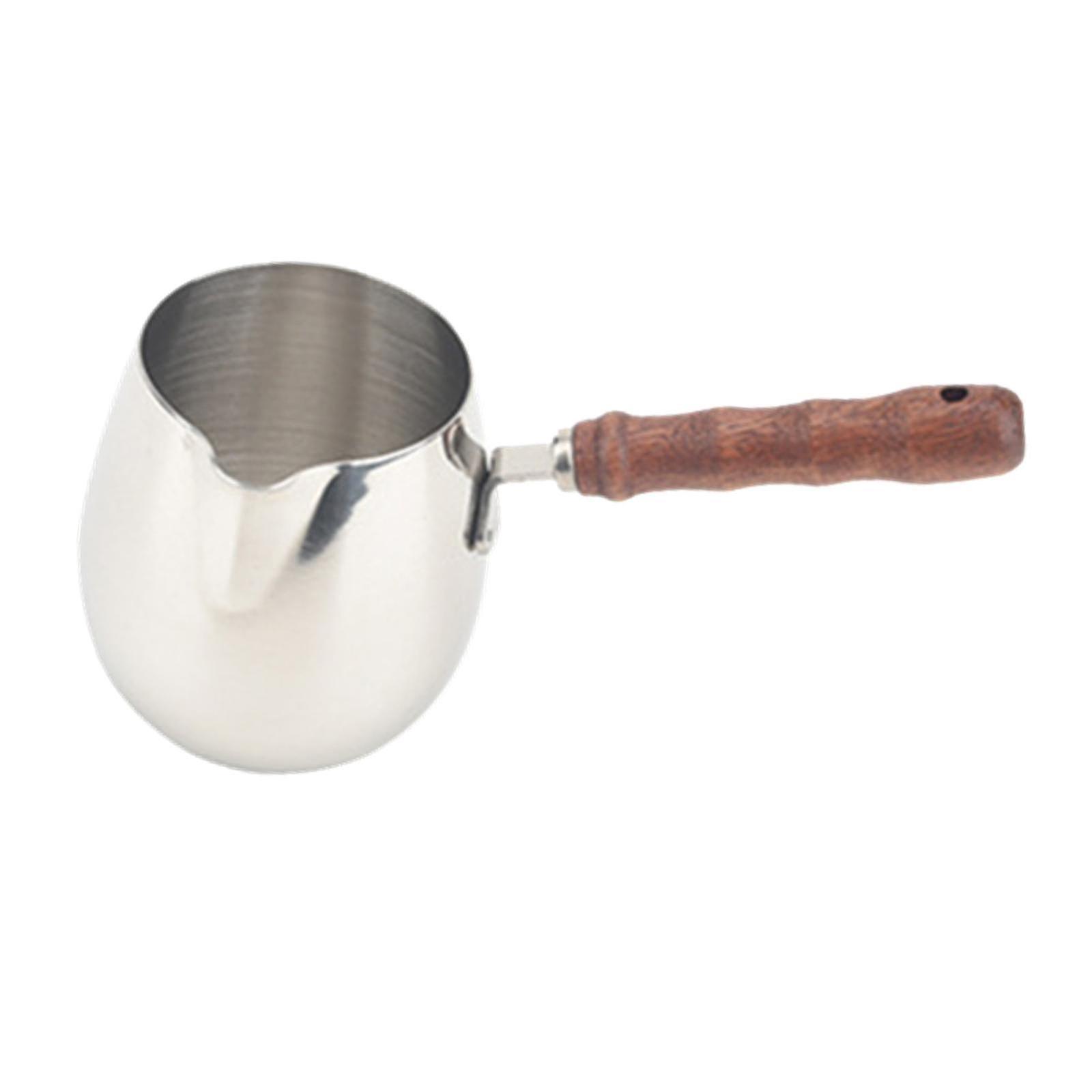 Stainless Steel Milk Frothing Jug Wooden Handle Sturdy Versatile Milk Warmer 300ml