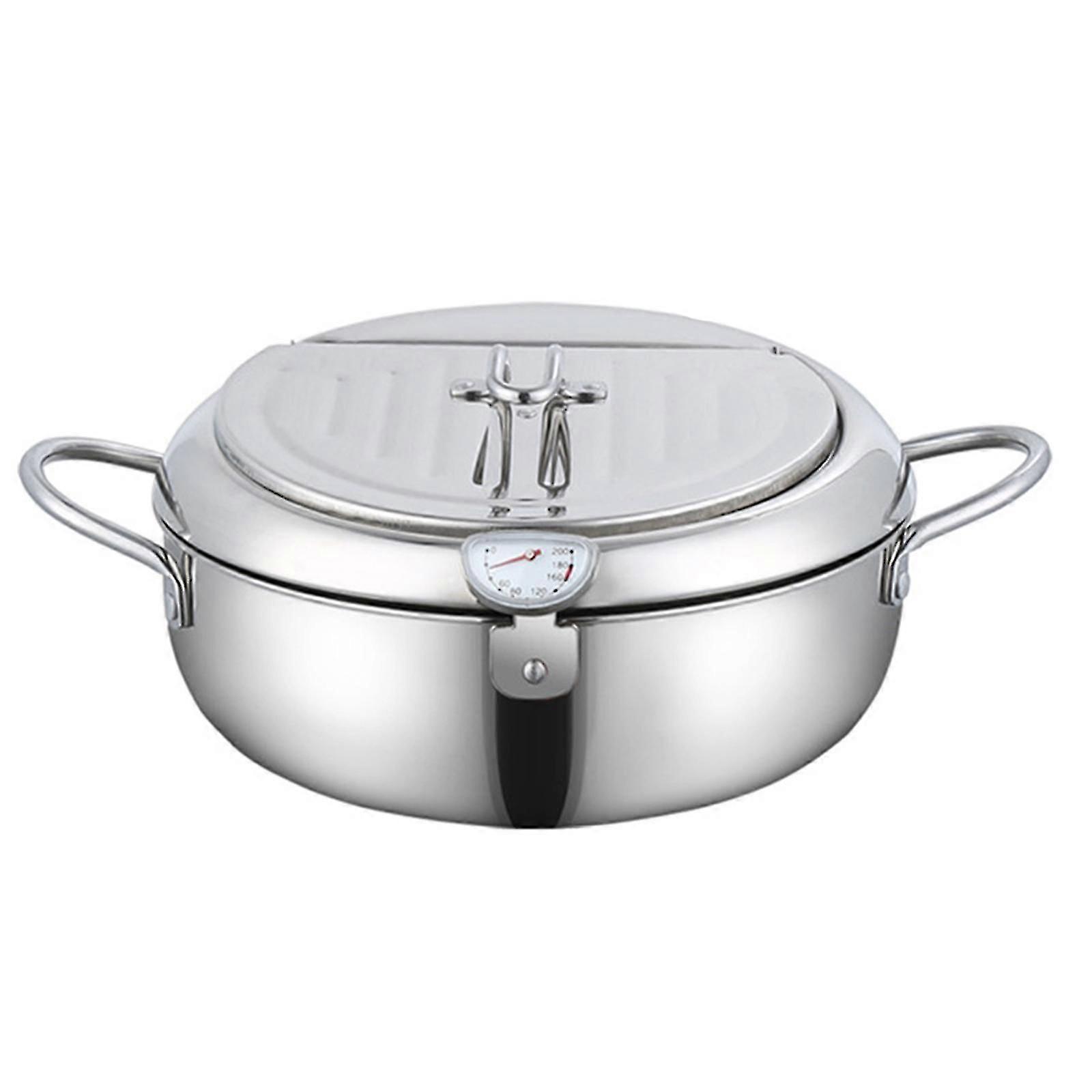 Deep Fryer Pot,304 Stainless Steel W/ Temperature Control & Lid, Deep Frying Pan