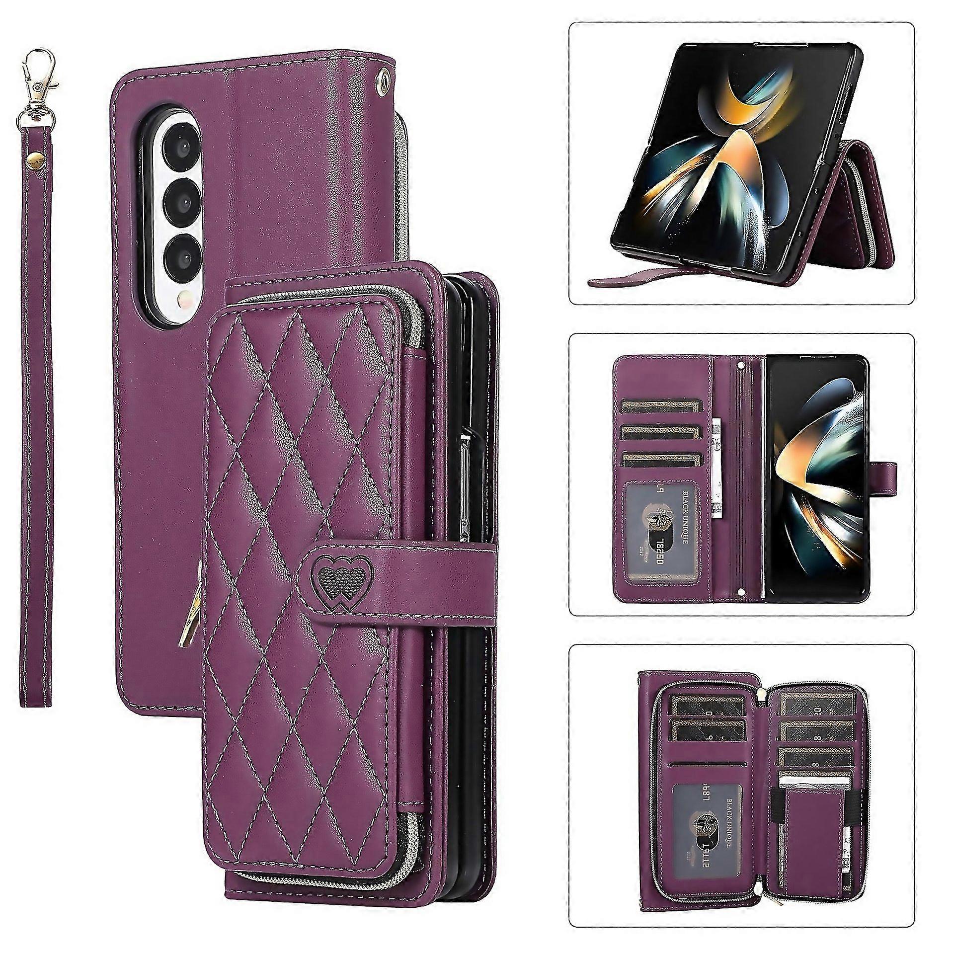 For Rhombic Full Zipper Wallet Leather Phone Suitable For Everyday Use