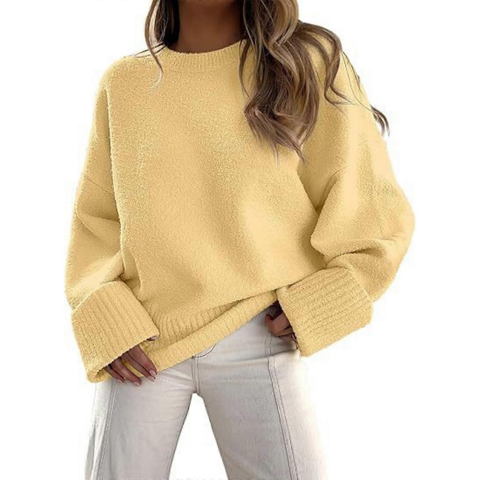 Women's Sweaters Long Sleeve Fuzzy Knit Casual Chunky Pullover Sweater Fall Outfits Yellow XL