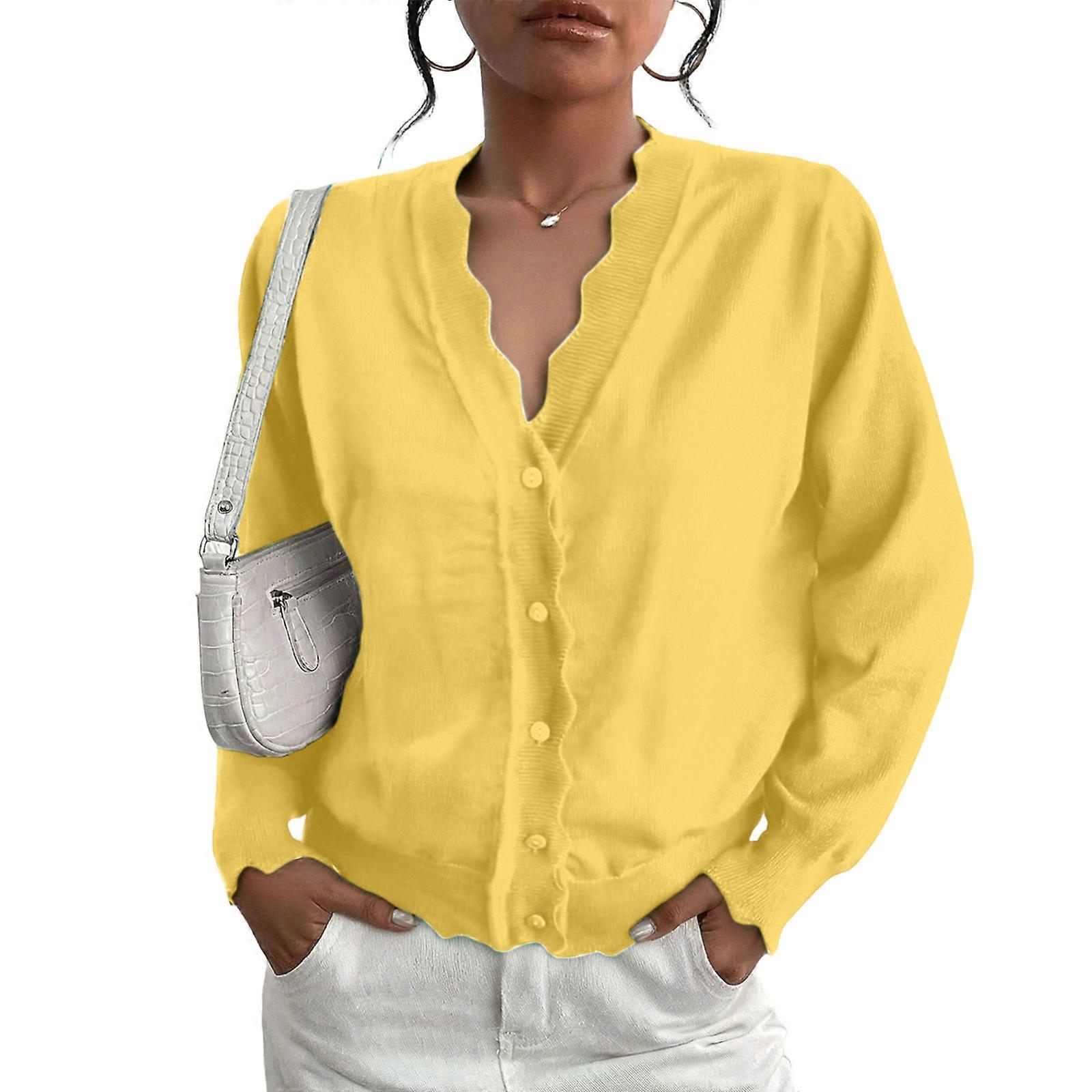 Women's Long Sleeve V-Neck Button-Down Sweater Yellow XL