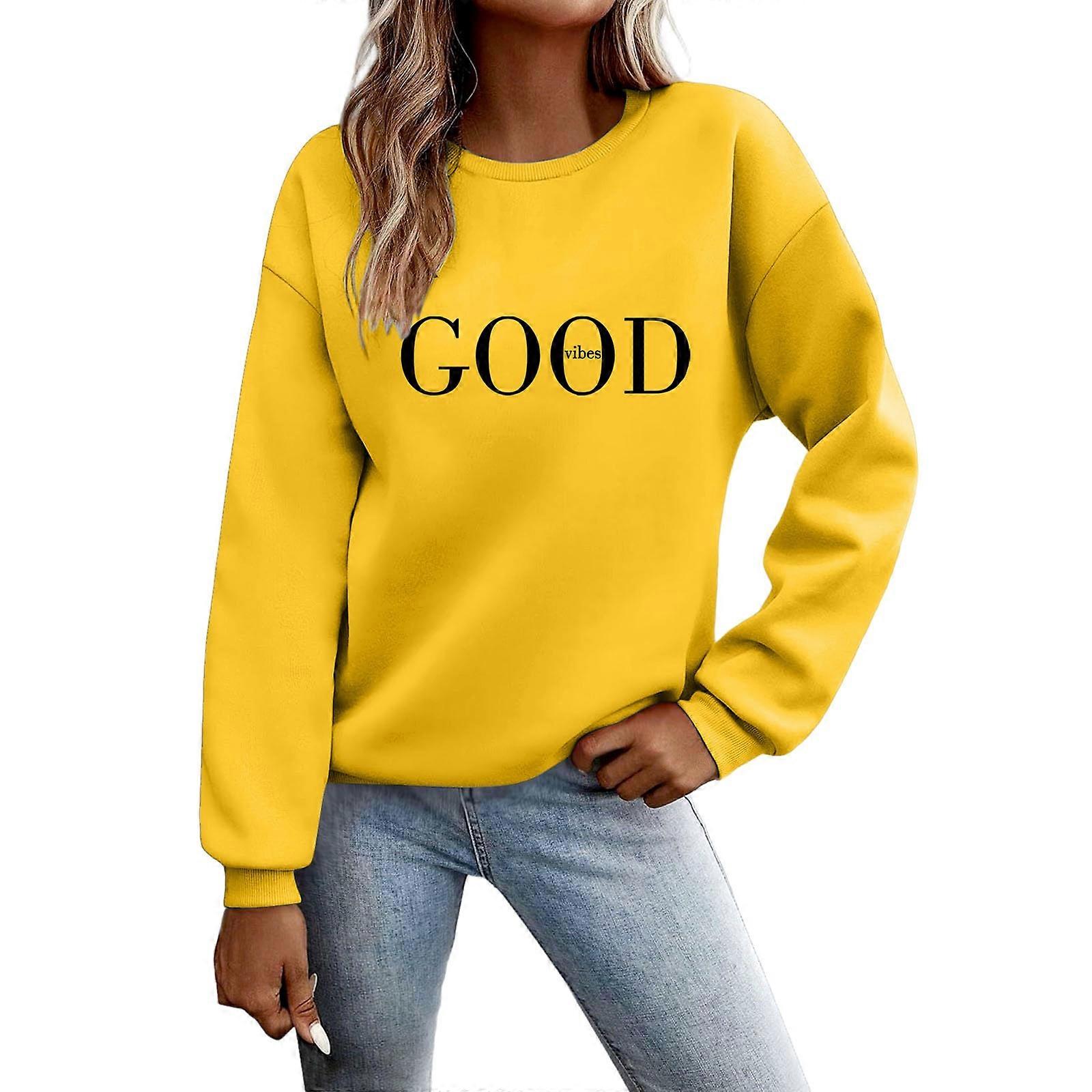 Women's Oversized Pullover Elegant Autumn Long Sleeve Shirt Women's Winter Sweatshirt Top Yellow XL