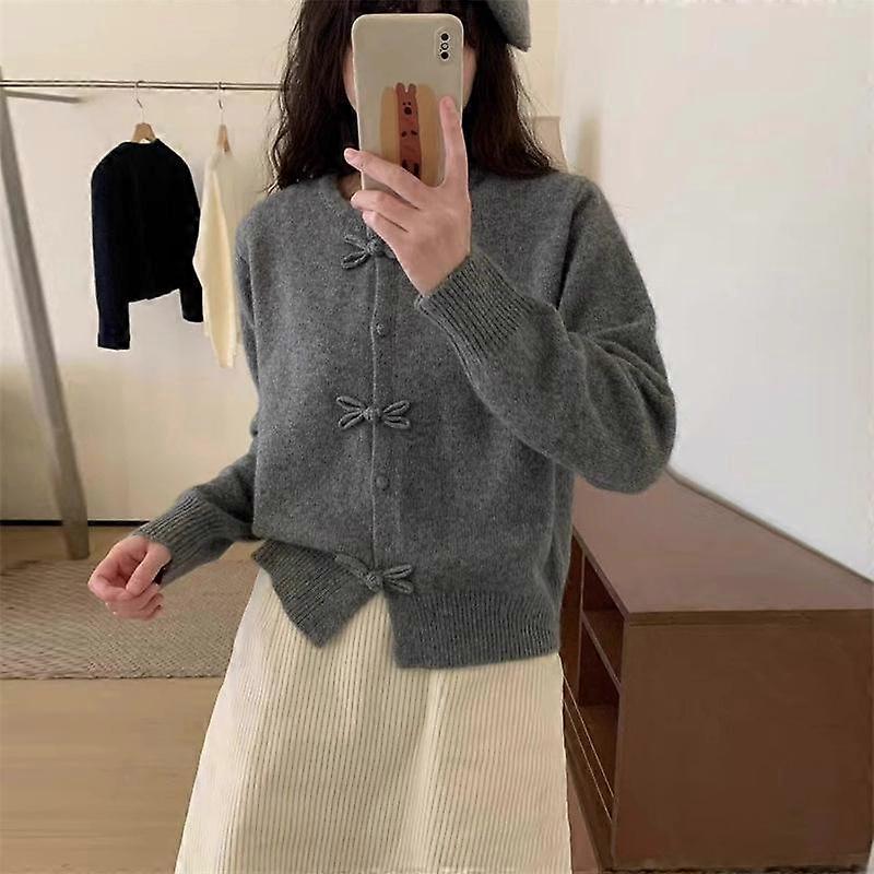 QICED Spring and Autumn Fashion Loose All-match Sweater Women's Style Design Feeling Disc Buckle Round Neck All-match Sweater