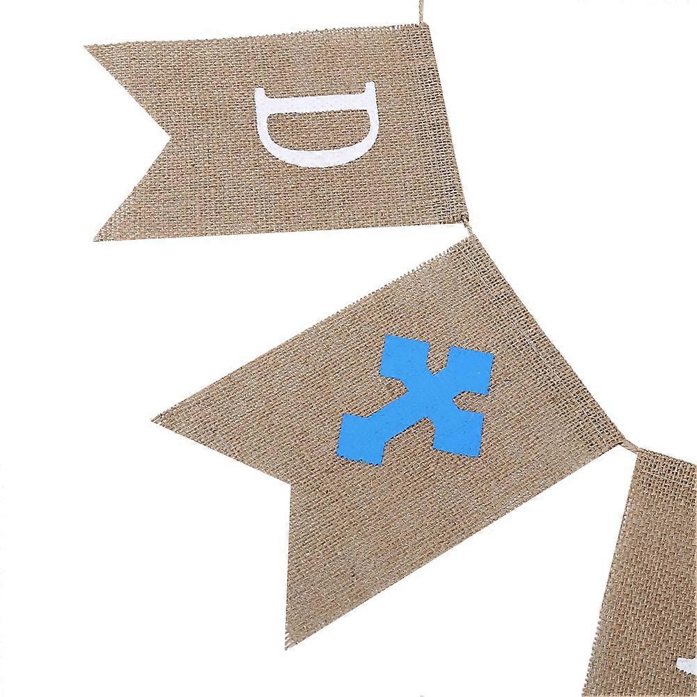 Fashionable Tail Shaped Linen Banner Bunting #03, 38cm, Blue Cross