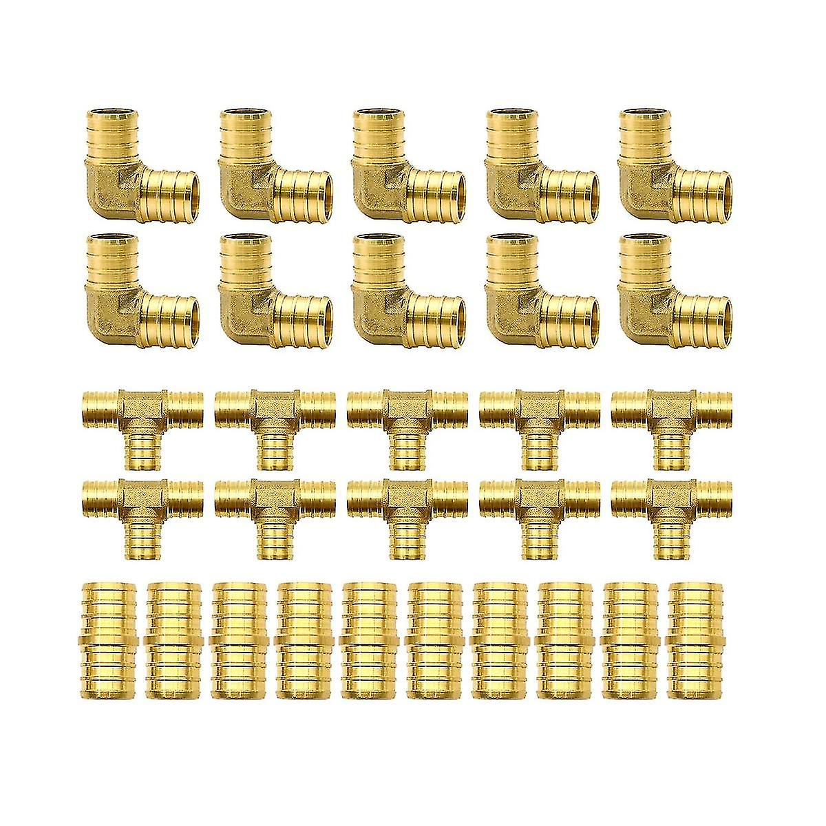 30pcs 3/4inch Brass Fittings Tee Coupler Reducer Crimp Cinch, Brass Crimp Fitting Combo With Tees"t