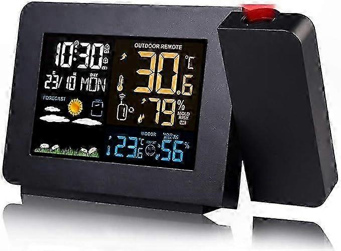 Smart Projection Alarm Clock with Outdoor Sensor, Weather Station, Dual Alarms, Dimmable LCD, 12/24H, EU Plug, Black