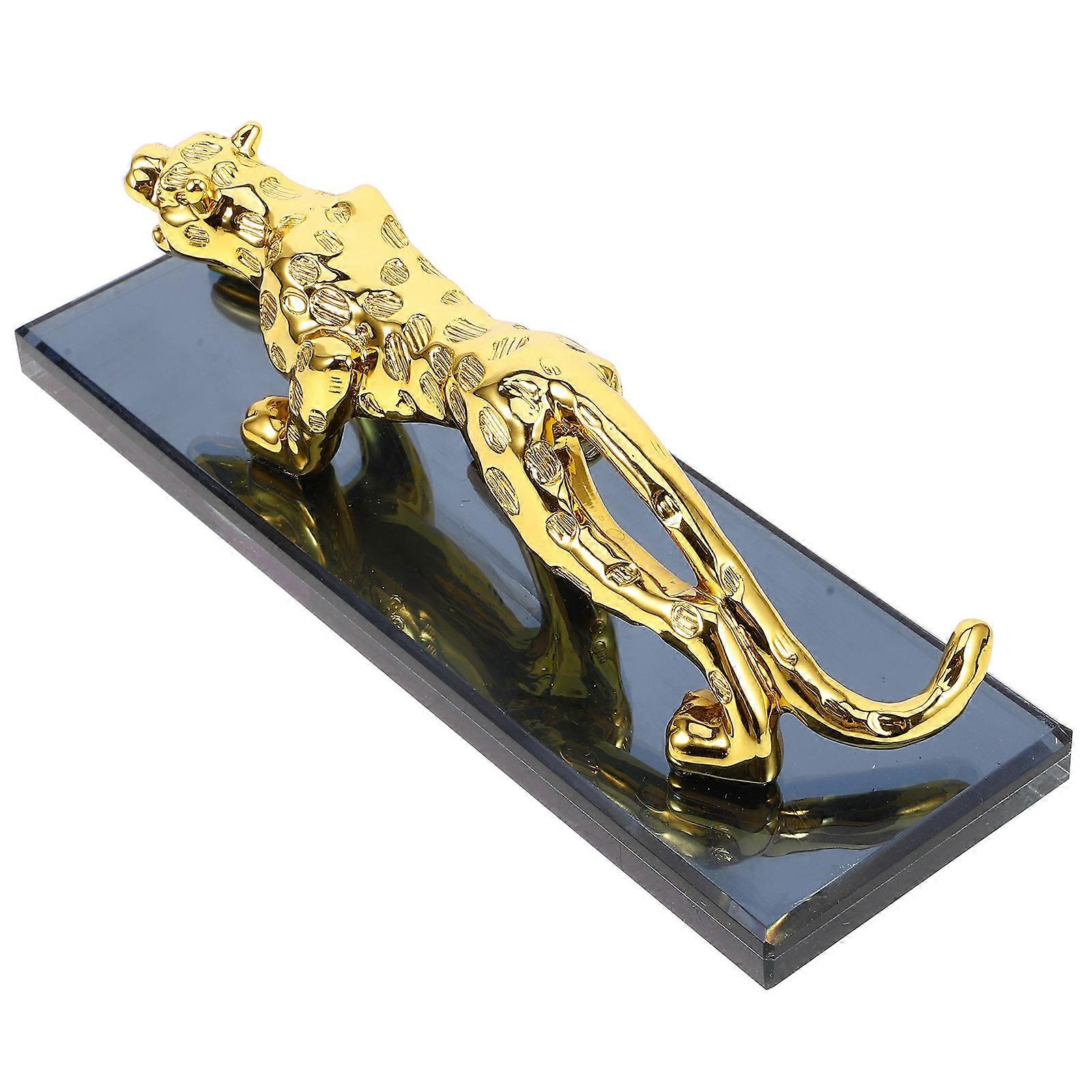 Wealth Leopard Resin Leopard Statue Table Animal Leopard Decor Stable Base Elegant Design 1Set
