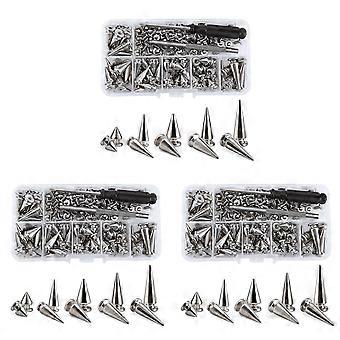 210 Sets Silver Mixed Shape Spikes and Studs Cone Croc Spikes Leather Kit for Clothing Shoes Belts DIY