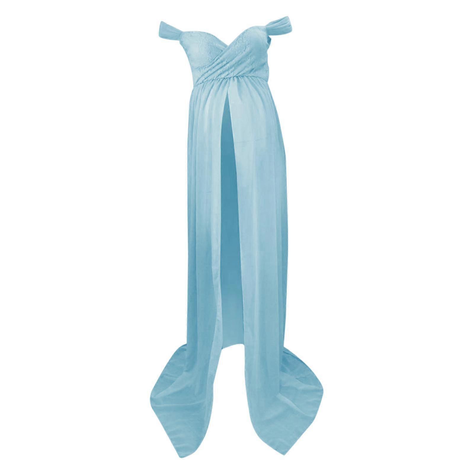 Maternity Dress Off Shoulder Split Front Chiffon Maxi Gown Dress for