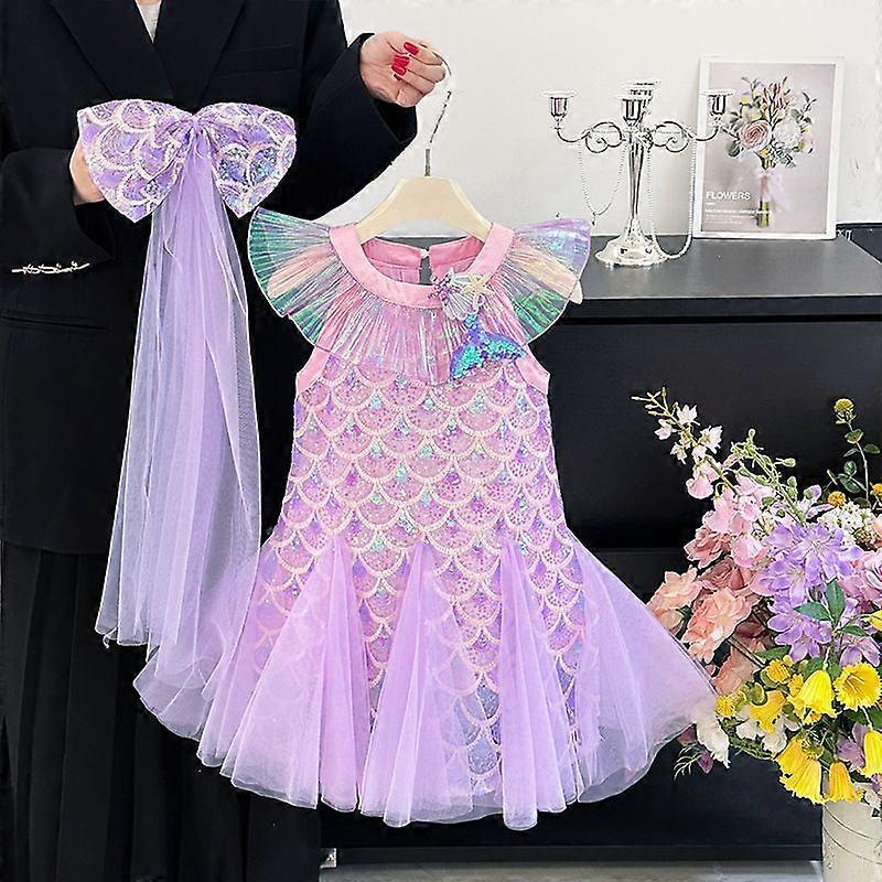 Princess Dress Mermaid Tail Dress for Girls with Veil Summer Sleeveless
