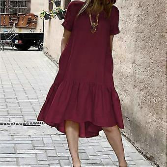Robe dt pour femmes Couleur unie Col rond Volant Robe mi-longue pour dcontract