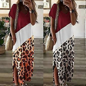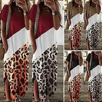 Women Dress Low Split Design Short Sleeve Long Dress Casual V Neck Dress