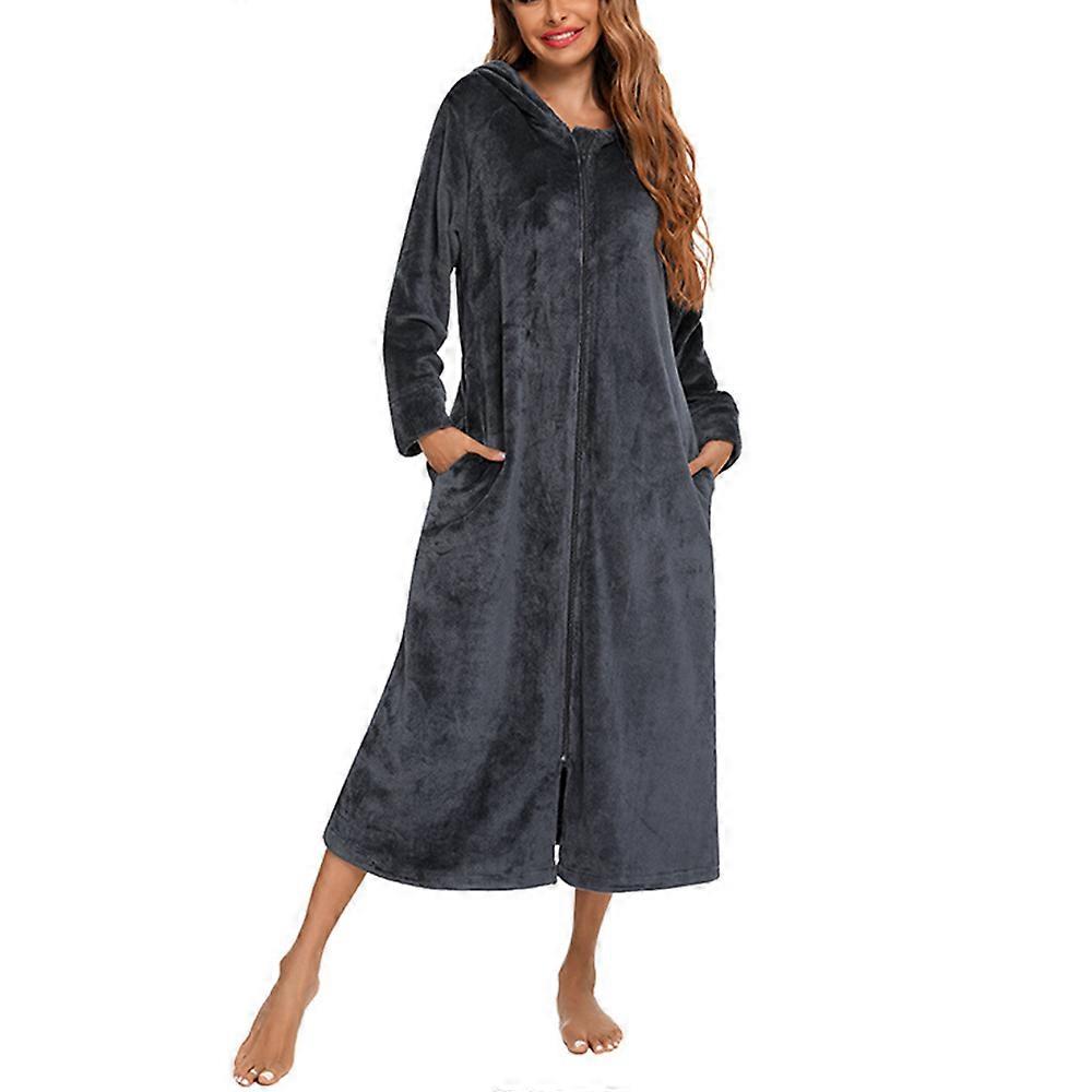 Women's Zip Up Fleece Robe Plush Bathrobe Soft Warm Housecoat