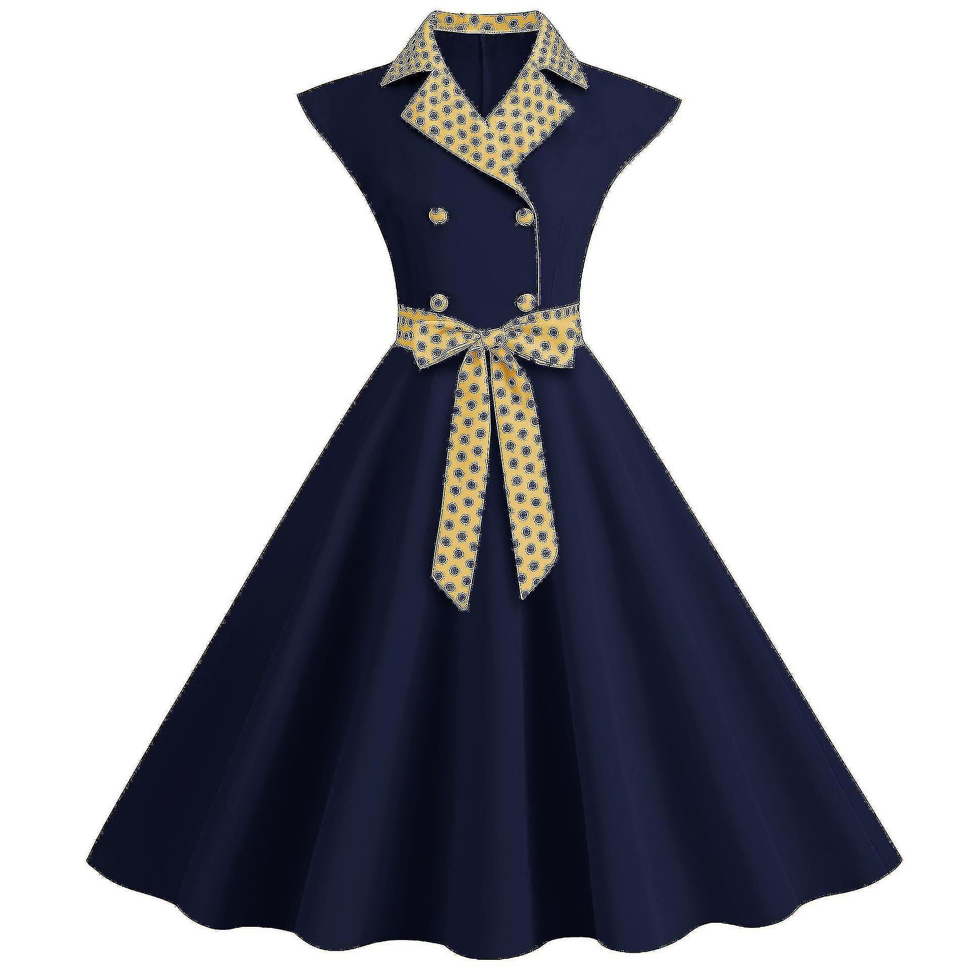 Temperament new suit collar polka dot casual solid colour thin big swing dress with belt