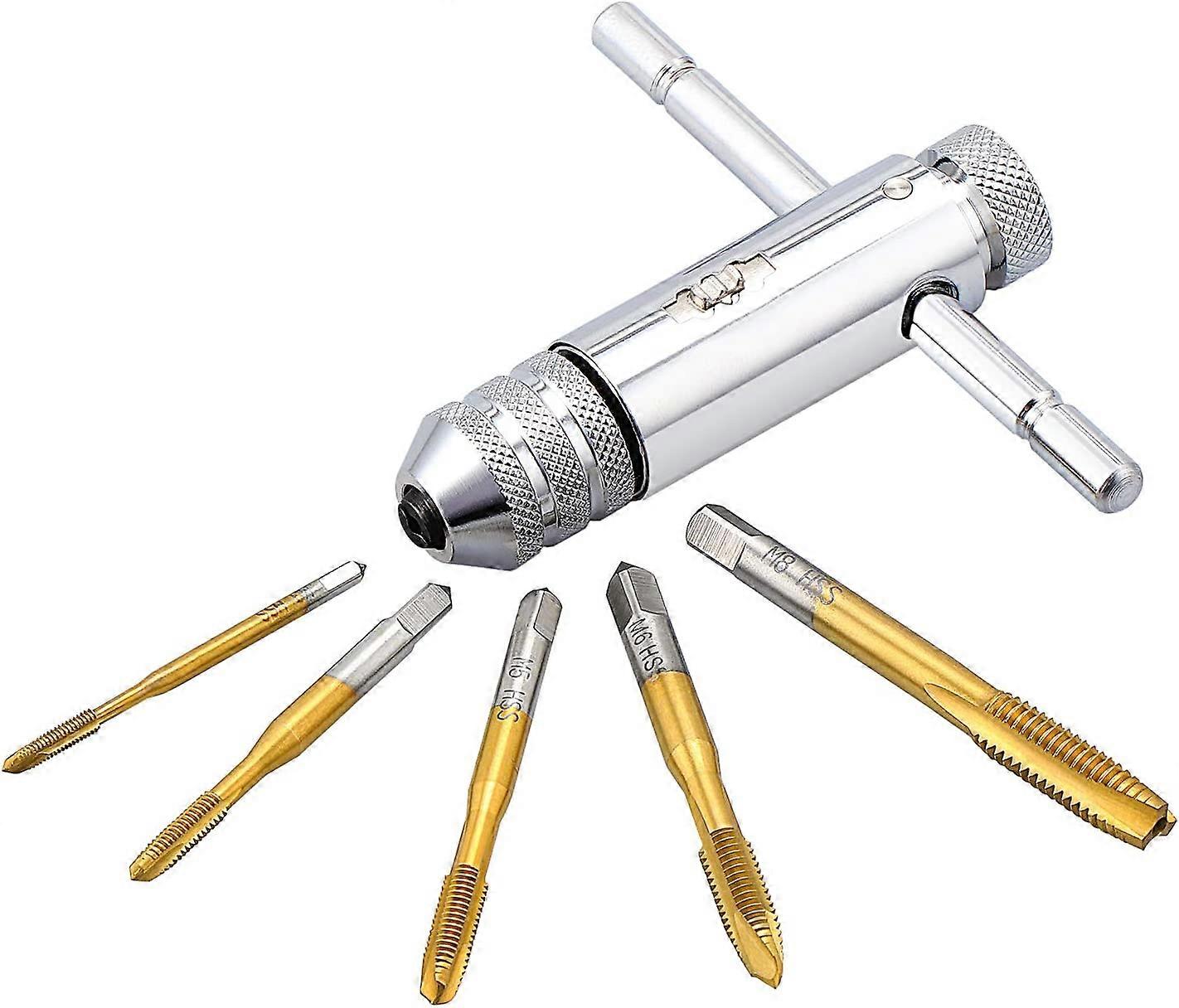 Hand Taps, Adjustable Tap Wrench, T-Handle Tap Holder Wrench with 5pcs HSS M3 M4 M5 M6 M8 Metric Thread Tap