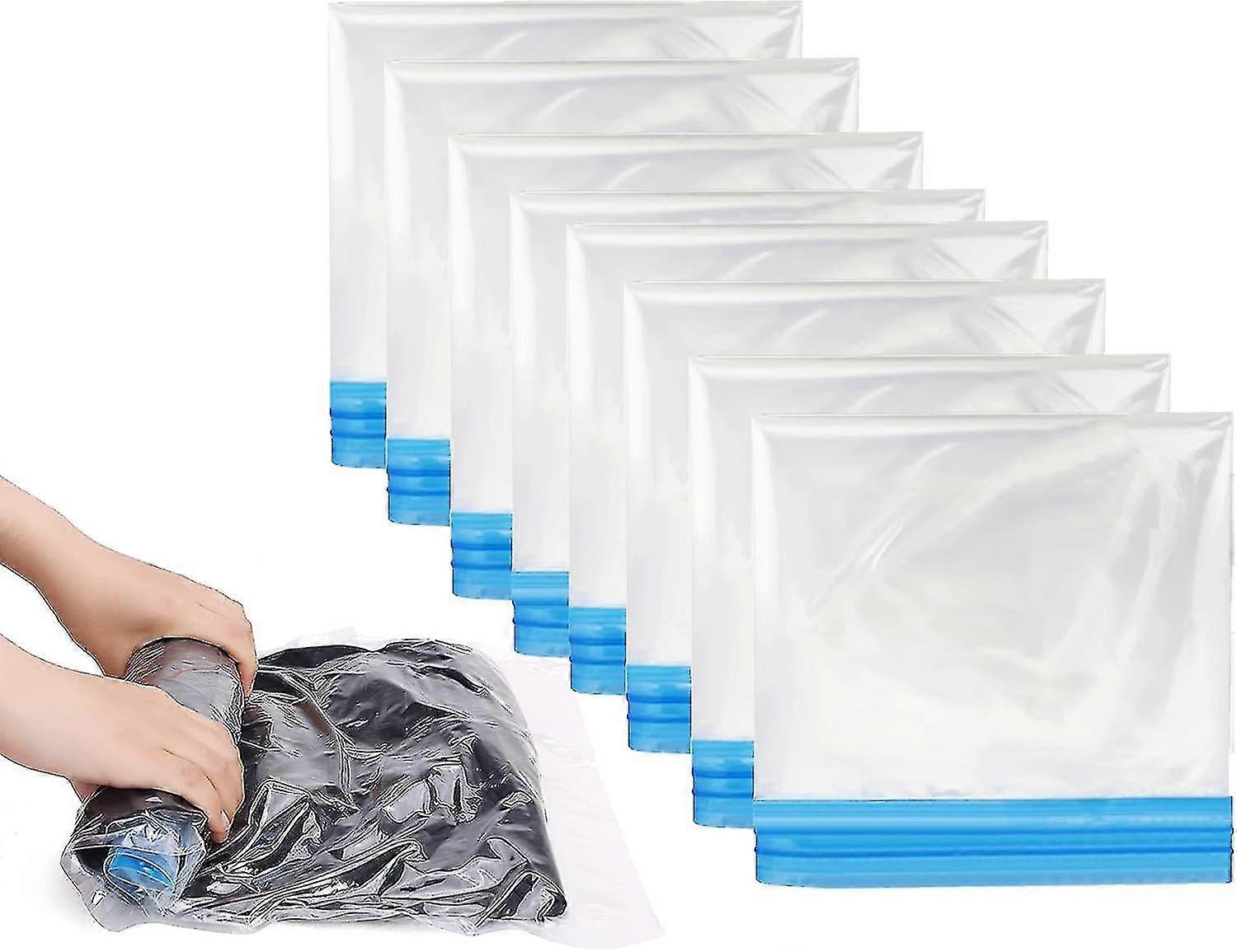 Roll Up Compression Bags, 8 Pack 60x40cm Reusable Vacuum Storage Bags For Travel, Saving Space In Suitcase