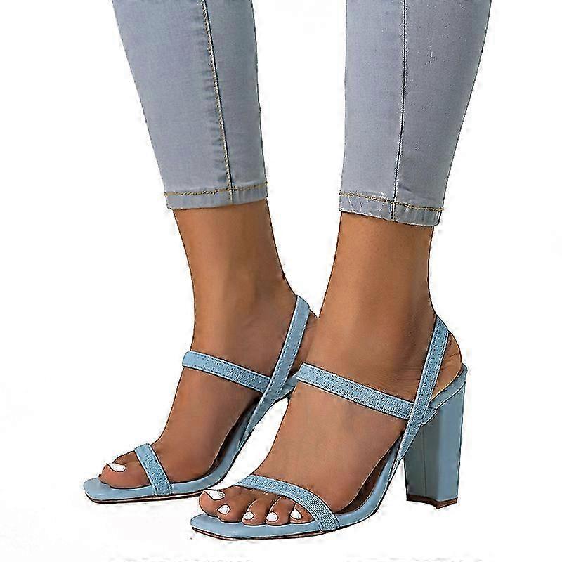 2025 Blue Square Toe Heels Sandals