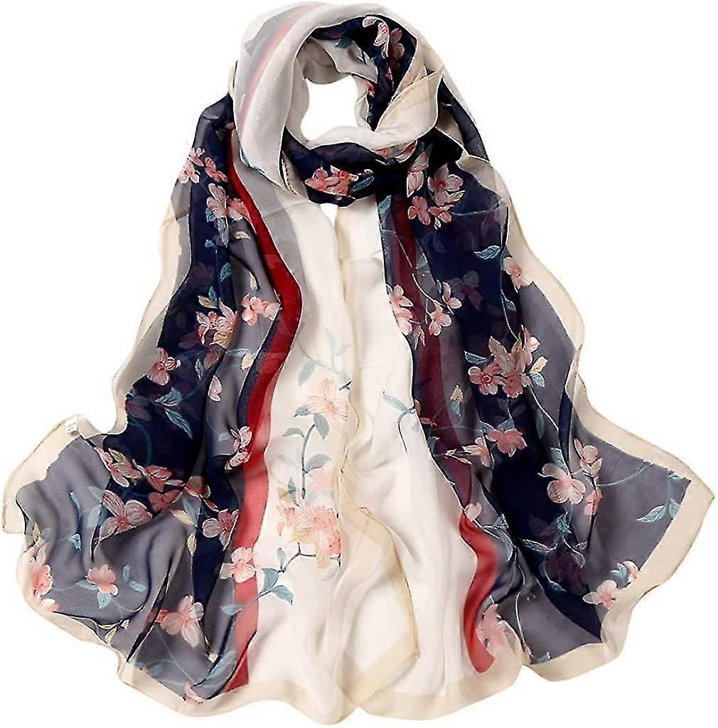Satin Scarf Neck 160 * 50cm Women Flower Print Long Soft Wrap Scarf Simulation