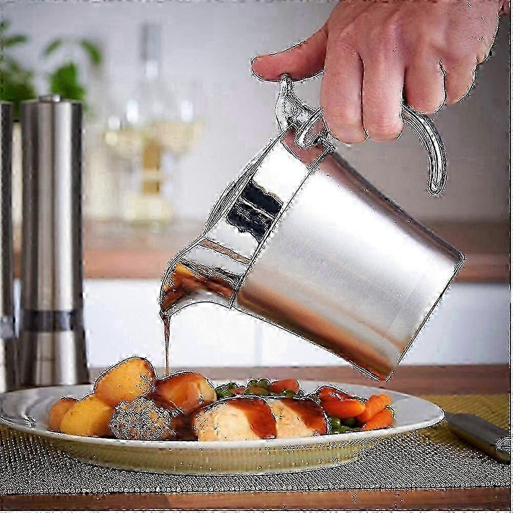 Stainless Steel Double Insulated Gravy Boat With Hinged Lid (16 Oz / 450ml)