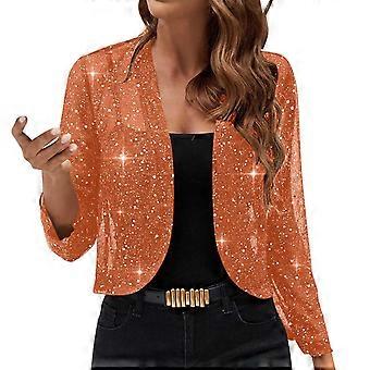 Boléro court à sequins et sequins, manches 3/4, ouverture sur le devant, jaune, taille XL.
