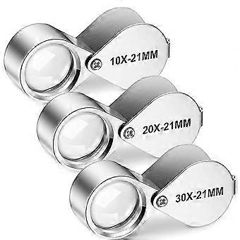 3 pièces bijoutiers oeil loupe ensemble 10X, 20X et 30X poche bijoux Loupe, bijoutiers oeil loupe