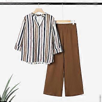 VONDA Femme Petit Col Rond Plongeant À Manches Longues Rayé Haut Ample Pantalon Long