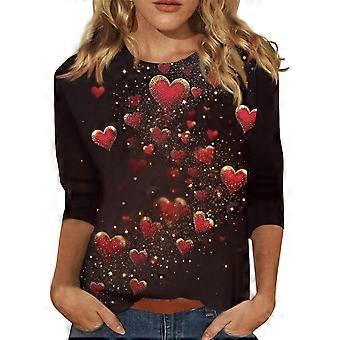 T-shirt Saint-Valentin femme, imprimé cœurs, manches 3/4, col rond, en coton, bordeaux, XL