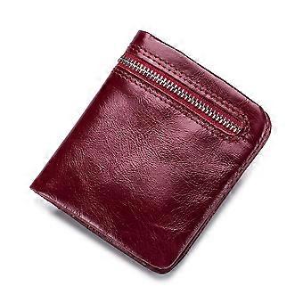Portefeuille Mode Huile Cire En Cuir Véritable Portefeuilles Dames Court Embrayage Sac À Main 3 Pli En Cuir Portefeuille Carte De Crédit Pièce De Monnaie Sac