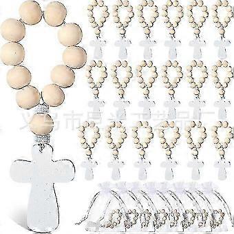 60 Pcs Chapelet en bois avec sacs en filet Perles de chapelet en bois pour le baptême Première Communion Confirmation Douche nuptiale Baby Shower