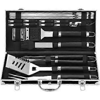 Ensemble d'ustensiles de barbecue en acier inoxydable - 22 pièces avec boîtier en aluminium noir