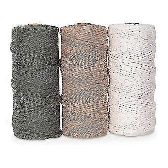 Macrame Yarn Set Of 3 - Cordon de coton pour projets de bricolage Tapisserie Capteur de rêves - Cordon de coton - Blanc Olive Vert Rose