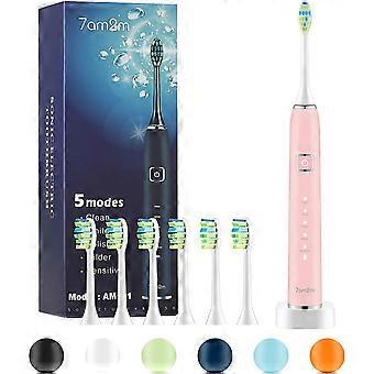 Brosse à dents électrique sonique avec 6 têtes de brosse, 5 modes, minuterie de 2 minutes, étanche IPX7, une charge dure 90 jours