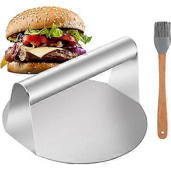 Presse à hamburger en acier inoxydable de 5,7 pouces, écraseur de hamburger rond avec brosses à badigeonner pour la cuisson du bacon, du bœuf, du steak et des grillades au barbecue