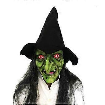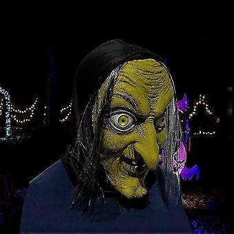 Masque de sorcière pour femme âgée, masque vert pour Halloween, masque effrayant, masque d'horreur, costume de cosplay avec yeux rouges et cheveux longs