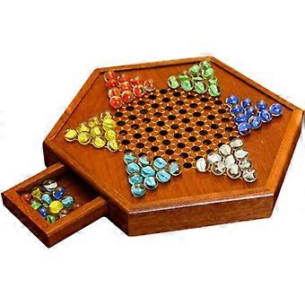 Ensemble de jeux de dames chinoises, jeux de société de dames avec tiroir de rangement - Boîte en noyer