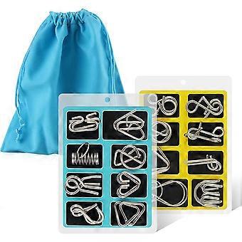 KATEA Metal Wire Puzzle Set de 16 avec pochette, Brain Teaser IQ Test Disentanglemen Iron Link Unlock Interlock Game Chinese Ring Magic Trick Toy pour la partie