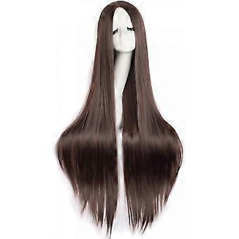40"/100cm Naturel Doux Droite Long Cosplay Perruque (brun foncé)