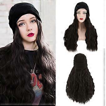 Chapeau en tricot de perruque à capuche à la mode pour femmes avec de longs cheveux bouclés de plusieurs couleurs pour un usage quotidien