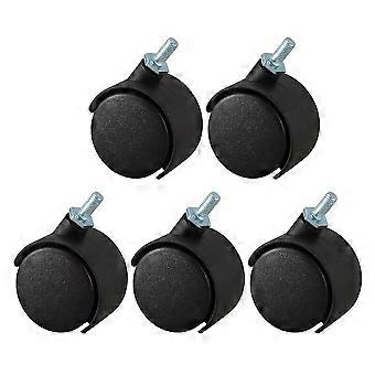 5 roulettes pivotantes à tige filetée de 6 mm avec roues jumelées de 40 mm, noir