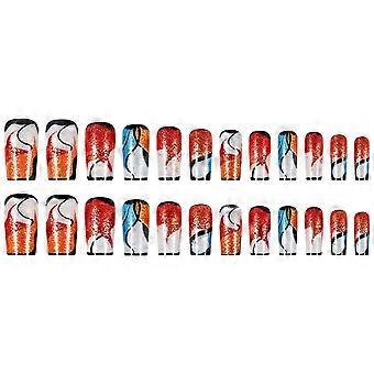 Press on Nail Coffin Fake Nail Acrylic False Nail Glitters Artificial Nail Glues On Nail Stick on Nail for Womens Multicolor