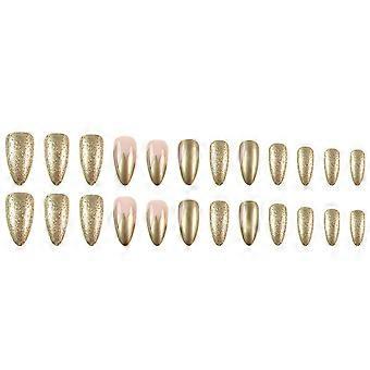 24Pieces Glitters French Tip False Nail With Gold Edges Pink Blush Design Shine Press On Nail For Women Party Decors Multicolor
