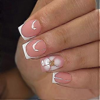 Artificial Nail Medium Length Press On Nail Glittering Stick on Nail White French Tip False Nail Manicures Supplies Multicolor